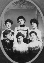 Description :PORTRAIT DE GROUPE EN BUSTE. PREMIERE RANGEE: EMMA GAGNE, ELODIE VERMETTE (FEMME D'HILARION GAGNE), HELOISE GAGNE. DEUXIEME RANGEE: ANNA GAGNE, GRATIA GAGNE ET AMANDA GAGNE.