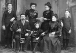 Description :VUE DE SEPT MEMBRES DE LA FAMILLE GAGNE. PREMIERE RANGEE: UN HOMME TENANT UNE CANNE, UNE FILLETTE TENANT DES FLEURS ET ZELIE (BILODEAU) GAGNE TENANT UN LIVRE. DEUXIEME RANGEE: HILARION GAGNE, GRATIA ET EMMA TENANT UN LIVRE OUVERT ET PEUT ETRE ...