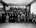 Description :GROUPE REUNI POUR UNE PHOTO. DE GAUCHE A DROITE ET DE BAS EN HAUT: 1-J.A. LETELLIER, 2- ME OMER BIRON, 3- PROFESSEUR OSCAR CARTIER, 4- ME ERNEST SYLVESTRE, 5- CURE DOLOR BIRON, 6- JOSEPH BLAIS, 7- IRENEE LEMIEUX, 8- ME GEORGES SYLVESTRE, 9- DA...
