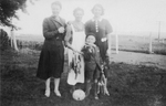 Description :UNE FEMME, HELOISE GAGNE, MARIE-ANGE GAGNE ET UN JEUNE GARCON DEVANT UN CHAMP. HELOISE ET LE JEUNE GARCON TIENNENT DU BLE D'INDE JAUNE ET ROUGE DANS LEURS MAINS.