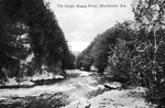Description :VUE D'UNE PARTIE DE LA GORGE DE LA RIVIERE MAGOG.