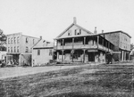 Description :VUE DU MAGASIN GENERAL BROSSEAU & MCMANNUS AUX COINS DES RUES KING OUEST ET WELLINGTON SUD. LE BATIMENT EST EN BOIS ET COMPTE TROIS ETAGES. UN BALCON ENTOURE LE DEUXIEME ETAGE. A GAUCHE, UN BATIMENT EN BRIQUES DE 3 ETAGES ET UNE MAISON EN BOIS...