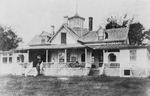 Description :VUE DE JAMES MACKINNON (AVEC RESERVE) DEVANT SA MAISON. LA MAISON EST EN BOIS ET COMPTE DEUX ETAGES. UN LONG PERRON LONGE LA FACADE DE LA MAISON. LES DEUX EXTREMITES DU PERRON SONT COUVERTS. LA MAISON COMPTE TROIS CHEMINEES ET UNE TOURELLE RON...