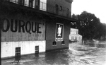 Description :PHOTO DE L'INONDATION PRES DE DEUX BATIMENTS SITUES A COTE DU PONT AYLMER: LA FERRONNERIE BOURQUE ET OLIVIER CHAREST, CHARRETTIER (CARRIAGE MAKERS).