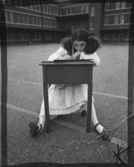 Description :LES DIVERSES VUES REPRESENTENT 3 ELEVES EN DIFFICULTE D'APPRENTISSAGE ET LEUR PROFESSEUR. LES SCENES SE DEROULENT DANS UNE COUR D'ECOLE. 3.1 - GROS PLAN SUR GAETANE LAMOUREUX ASSISE A UN BUREAU. CELLE-CI A UNE ROBE BLANCHE ET DES LULUS. 3.2 - ...