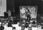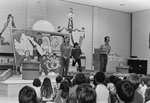 Description :28.1 - LA MERE (MARTINE GAUDREAU) FAIT DES GUILI, GUILI A SON ENFENT TANDIS QUE LA PERE (JACQUES ROUTHIER) LIT SON JOURNAL. A NOTER, L'ENFANT EST IMAGINAIRE. EN AVANT-PLAN, DES SPECTATEURS. EN ARRIERE-PLAN, UN MUR SUR LEQUEL SONT PEINTS DES PE...