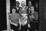 Description :DE GAUCHE A DROITE, JULIE RIOUX (RESPONSABLE TECHNIQUE), GEORGES COMTOIS (COMEDIEN), NANCY ROY (COMEDIENNE), JACQUES JALBERT (COMEDIEN) ET YVES MASSON (AUTEUR DE LA PIECE). GEORGES COMTOIS ET NANCY ROY PORTENT LEUR COSTUME DE SCENE.