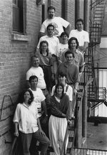 Description :DE BAS EN HAUT DANS UN ESCALIER: SYLVIE COUTURE (GRAPHISME), MICHELE GASCON (COMEDIENNE), RENE BECHARD (MUSIQUE), HELENE ELEMENT (REGIE), RAYMOND PLANTE (TEXTE), PAUL LABRECHE (COMEDIEN), PAULE JOSEE MEUNIER (COSTUME), CHARLES PREFONTAINE (COM...