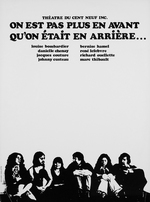 Description :DANS LE HAUT DE L'AFFICHE, LE TITRE DE LA PIECE ET LE NOMS DES COMEDIENS. AU BAS DE L'AFFICHE, ON APERCOIT LES COMEDIENS ASSIS LES UNS A COTE DES AUTRES.
