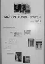 Description :PANNEAU D'EXPOSITION SUR LEQUEL SONT PRESENTEES DES CARACTERISTIQUES D'ARCHITECTURE. ON VOIT UNE PHOTO DE LA MAISON GAVIN-BOWEN CONSTRUITE VERS 1835, DE STYLE COTTAGE REGENCY.