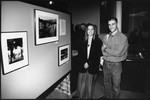 Description :MICHEL CARON, GAGNANT DU 1ER PRIX, ET SON AMIE, PRIS EN PHOTO DEVANT LE PANNEAU QUI MONTRE LES OEUVRES PRIMEES.