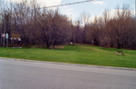 Description :PANNEAU ANNONCANT LE PARC A GAUCHE. AU CENTRE, L'ALLEE DES SAULES. TABLE A PIQUE-NIQUE, BANC.