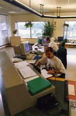 Description :9.1 - MICHEL HEVEY, INFOGRAPHE, EST ASSIS DEVANT UN ORDINATEUR, BUREAU DE LA COMPTABLE. 9.2 - HELENE LIARD, RESPONSABLE DU SERVICE D'ARCHIVES EST ASSISE A UNE TABLE DE TRAVAIL DANS LA SALLE DE CONFERENCE SITUEE AU REZ-DE-CHAUSSEE. 9.3 - HELENE...