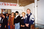 Description :1.1 A 1.3 - DEVANT L'ENTREE DE LA SALLE ANDREE-DESILETS, UN GROUPE DE LA SOCIETE CANADIENNE DE CHIMIE PREND LA POSE POUR LA PHOTO. EN HAUT DE LA PORTE D'ENTREE, L'ANNONCE DE L'EXPOSITION "TIENS V'LA LE FACTEUR".