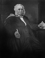 Description :PHOTO D'UNE TOILE REPRESENTANT EDWARD HALE. IL EST ASSIS ET PORTE UNE TOGE DE JUGE. SES CHEVEUX SONT BLANCS. DE GROS FAVORIS BLANCS ORNENT SON VISAGE.