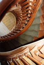 Description :18.1 A 18.2 - DANS L'ENTREE SUD DE LA SOCIETE D'HISTOIRE DE SHERBROOKE, VUE EN PLONGEE DE L'ESCALIER COLIMACON. 18.3 - VUE SUR LA RAMPE DE L'ESCALIER.