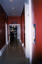 Description :20.1 - CORRIDOR DU 2E ETAGE DE LA S.H.S. QUI CONDUIT A LA PORTE D'ENTREE DE LA SALLE AMERICAN-BILTRITE. LES MURS DU CORRIDOR SONT ROUGES. 20.2 - MEME QU'EN 20.1 ON VOIT EN PLUS AU MUR GAUCHE, LA PORTE DE L'ASCENSEUR. LES MURS SONT GRIS.