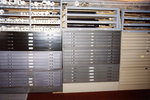 Description :21.1 - DANS LA SALLE DES JOURNAUX, ON VOIT UNE SERIE D'ETAGERES SUR LESQUELLES SONT RANGES LES JOURNAUX. 21.2 - VUE SUR LES CARTOTHEQUES OU SONT RANGEES LES CARTES.