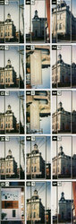 Description :LA PLANCHE CONTACT COMPTE 15 PHOTOS. LA PLUPART DES PHOTOS MONTRENT L'ANGLE DE LA TOUR. UNE IMAGE MONTRE LA PORTE DE LA SALLE ANDREE-DESILETS AVEC VUE PARTIELLE DE L'EXPOSITION PERMANENTE.