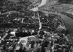 Description :VUE AERIENNE DU QUARTIER CENTRE A SHERBROOKE. ON VOIT TRES BIEN LE SEMINAIRE ST-CHARLES ET LA CATHEDRALE(INACHEVEE). LE TRACE DE LA ST-FRANCOIS ET LA JONCTION AVEC LA RIVIERE MAGOG EST BIEN VISIBLE