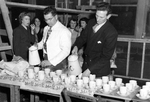 Description :VUE INTERIEURE DE DIFFERENTS LOCAUX DE LA RAND. 10.1 - GEORGE DICK, DE DOS, FAISANT LA REMISE DES TROPHEES DISPOSES SUR UNE TABLE AU PREMIER PLAN. DERRIERE, LES INVITEES FEMININES ATTENDANT LA RECOMPENSE, DONT ALINE HOLTHAM, LA DEUXIEME A DROI...