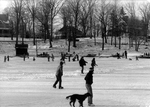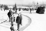 Description :3.1 : DES GENS PATINENT SUR L'ETANG DU PARC TRANSFORME EN PATINOIRE. A L'ARRIERE-PLAN, A DROITE LE PAVILLON 1, A GAUCHE LE PAVILLON 2 ET AU CENTRE LE PAVILLON 3 AVEC SA GRANDE CHEMINEE. 3.2 : DES GENS PATINENT SUR LA PATINOIRE. A L'ARRIERE-PLA...
