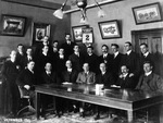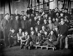 Description :VUE INTERIEURE DE L'EDIFICE NUMERO 5. EMPLOYES PRENANT LA POSE. A NOTER LA PRESENCE DE TRES JEUNES OUVRIERS. ON PEUT RECONNAITRE, DEBOUT, A L'EXTREME GAUCHE, A.W. SAUNDERS.