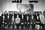 Description :VUE DU HALL DE L'ENTREE PRINCIPALE DE LA RAND OU LES MEMBRES DE LA L.S.A. ET LES NOUVEAUX MEMBRES A VIE PRENNENT LA POSE. LES NOUVEAUX MEMBRES A VIE, DECORES D'UN RUBAN, SONT, EN AVANT A L'EXTREME DROITE: GEORGE PARSONS; ET DEBOUT, QUATRIEME A...