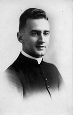 Description :PORTRAIT EN BUSTE DE LEO EMOND. CELUI-CI PORTE UNE SOUTANE.