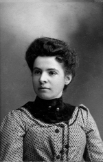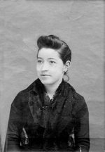 Description :PORTRAIT EN BUSTE DE THERESE BIRON. CETTE DERNIERE PORTE UNE CHEMISE ET UNE VESTE.
