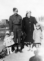 Description :LEON BIRON ET SA FEMME EXILIA EMOND POSENT EN COMPAGNIE DE LEURS DEUX ENFANTS, JEAN-JACQUES, A GAUCHE, ET LAURENT, A DROITE. LEON PORTE UN HABIT MILITAIRE ET UN BERET SUR LA TETE. LES DEUX ENFANTS ET EXILIA PORTENT DE LEUR COTE UN MANTEAU LONG...