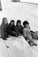 Description :30.1 - LES QUATRE GARCONS APPARAISSENT ASSIS SUR UN TRAINEAU DE BOIS. ILS PORTENT UN MANTEAU, DES MITAINES ET UN CHAPEAU. DE GAUCHE A DROITE, RICHARD (DICK) JACKSON, GERALD HEATH, JEAN-JACQUES BIRON ET ROGER BIRON. 30.2 - JEAN-JACQUES EST COUC...