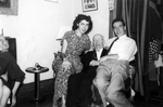 Description :FREDERICK-ANTOINE AGE DE 74 ANS EST ASSIS DANS UN FAUTEUIL. IL PORTE UN HABIT ET DES LUNETTES. ASSIS SUR LES ACCOUDOIRS, A GAUCHE, SA PETITE-FILLE CONNIE HNILICKA, A DROITE, SON FILS GUY BIRON. DERRIERE LE FAUTEUIL A GENOUX, JEAN-JACQUES BIRON...