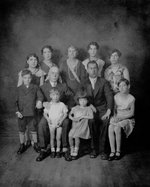 Description :FREDERICK-ANTOINE ET ALMA THERRIEN ENTOURES DE LEURS ENFANTS ET DE LEUR PETITE-FILLE. 1ERE RANGEE, GUY ET LA PETITE-FILLE CONNIE (DEVIENDRA MADAME HNILICKA). 2EME RANGEE, MARCEL, FREDERICK-ANTOINE, LEON ET THERESE. 3EME RANGEE FERNANDE, ISABEL...