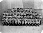 Description :SOLDATS PLACES SUR 5 RANGS. ALORS QUE LE PREMIER RANG EST ASSIS LES AUTRES SONT DEBOUT. LES SOLDATS PORTENT TOUS UNE CHEMISE A MANCHES COURTES, UN PANTALON COURT ET DE LONGS BAS. ILS ONT TOUS SUR LA TETE UN CASQUE COLONIAL, SAUF TROIS QUI PORT...