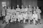 Description :HUIT HOMMES EN HABIT PRENNENT LA POSE. PARMI CEUX-CI, TOUS, SAUF DEUX, TIENNENT UN TROPHEE PROBABLEMENT REMPORTE AU CONCOURS D'ART ORATOIRE. ON RECONNAIT PARMI EUX, JOHN-S. BOURQUE (3EME), ROLAND DUGRE (6EME) (AVEC RESERVES) ET ANTONIO BEGIN (...