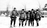 Sujet principal :EDWARD BRUEN WORTHINGTON ET QUATRE COMPAGNONS DU SHERBROOKE SNOW SHOE CLUB POSANT DANS UNE RUE ENNEIGEE