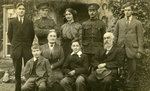 Description :A L'EXTERIEUR, DEVANT LE PRESBYTERE HARGRAVE, UN GROUPE DE 9 PERSONNES. DEBOUT, DE GAUCHE A DROITE: ARTHUR ELSDALE BOULTBEE DISPARU DURANT LA GUERRE, FAISAIT PARTIE DU RFC (ROYAL FLYING CORPS) ET ABATTU PAR LE BARON VON RICHTHOFEN; NED DU PRIN...
