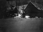 Description :PRISE DE VUE DURANT LA NUIT. LE CHALET DU S.S.S. CLUB RECOUVERT DE NEIGE ET DES ARBRES QUI L'ENTOURENT. UN ECLAIRAGE ARTIFICIEL SEMBLE AVOIR ETE UTILISE POUR CETTE PHOTOGRAPHIE.