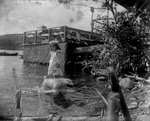 Sujet principal :PETITE FILLE SE BAIGNANT AVEC UN CHIEN A NORTH HATLEY
