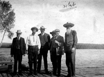 Description :9.1 - UN GROUPE DE SIX HOMMES POSANT DEBOUT SUR UN QUAI DE BOIS AU BORD D'UN LAC. DE GAUCHE A DROITE: KATHAN; JIM GORHAM; HARRY WILLIAMS; WHITMAN; E.B. WORTHINGTON; ET M. BRYANT. 9.2 - QUATRE HOMMES POSANT SUR UN QUAI DE BOIS AU BORD D'UN LAC...