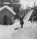 Sujet principal :GLADYS DAY WORTHINGTON ET SON TOBOGGAN DANS LA COUR ARRIERE DE LA MAISON FAMILIALE