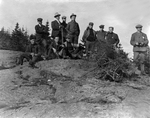 Sujet principal :E.B. WORTHINGTON ET UN GROUPE D'HOMMES EN RANDONNEE PEDESTRE AU MONT ORFORD (AVEC RESERVES)