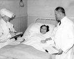 Description :LE DOCTEUR NOEL ACCOMPAGNE D'UNE RELIGIEUSE VISITE UNE PATIENTE ALITEE. PENDANT QU'IL PREND LE POULS DE LA MALADE (DEBOUT A DROITE DE LA PHOTO), UNE RELIGIEUSE DE L'AUTRE COTE DU LIT, PREND DES NOTES.