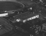 Description :VUE AERIENNE DU PALAIS DES SPORTS ET DES TERRAINS AVOISINANTS. ON APERCOIT UNE PARTIE DE LA PISTE DE COURSE (HIPPODROME).