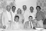 Description :SEPT HOMMES ET UNE FEMME REUNIS POUR UNE PHOTO. 1ERE RANGEE: GERARD FRADET ET JULES FAFARD. 2EME RANGEE: CHARLES AUGUSTE DESROCHERS, PIERRE LEMAIRE, UNE FEMME INCONNUE, LUCIEN BEDARD, ERNEST GRONDIN ET DANIEL ARCHAMBAULT. EN ARRIERE-PLAN, UNE ...