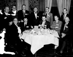 Description :ONZE HOMMES REUNIS AUTOUR D'UNE TABLE. DEBOUT: THOMAS SOUTHWOOD, A.H. STONE, W.-A. MCGINNIS, VIATEUR BOLDUC, GEORGE EWING ET SIRICE HUARD. ASSIS: DEUX OFFICIERS DU DEPARTEMENT DE LA CHASSE ET DE LA PECHE, LUCIEN BEDARD, ALLEN ROBINSON ET CHARL...