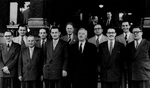 Description :56.1 - QUATRE HOMMES DEVANT UN RIDEAU. DE GAUCHE A DROITE: MICHEL BERTRAND, ONIDE GAGNE, LORNE MACPHERSON ET LUCIEN BEDARD. 56.2 - SIX HOMMES ET UNE FEMME REPARTIS SUR DEUX RANGEES. 1ERE RANGEE: MICHELINE CHAMPOUX, MAURICE GAUTHIER ET ONIDE GA...