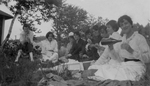 Sujet principal :FEMMES PRENANT LEUR DINER SUR L'HERBE