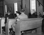 Description :1.1 - A L'INTERIEUR D'UNE EGLISE, VU DE DOS, REDMOND HAYES TOURNE LA TETE VERS LA CAMERA. IL TIENT DANS SES MAINS UN CHAPELET. A SA GAUCHE, UN HOMME EN COMPLET GRIS. DES FLEURS BLANCHES FIXEES SUR LES BANCS. PLUSIEURS PERSONNES DANS L'EGLISE. ...